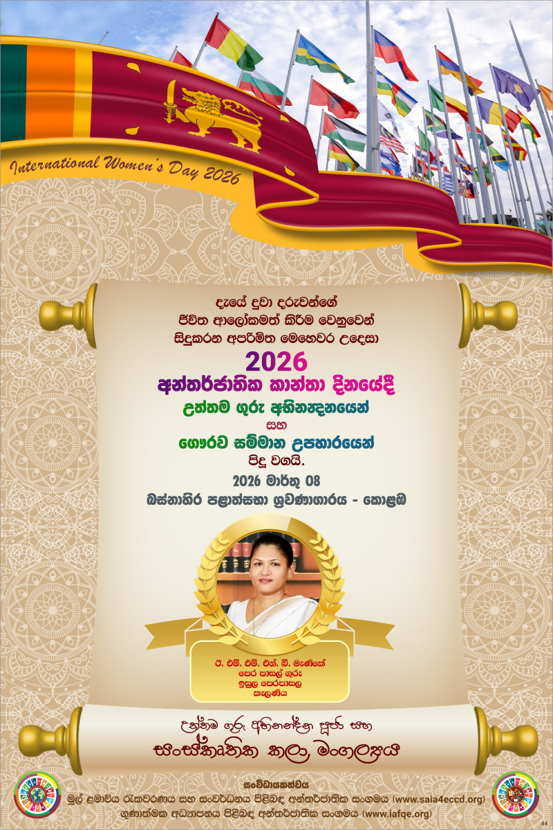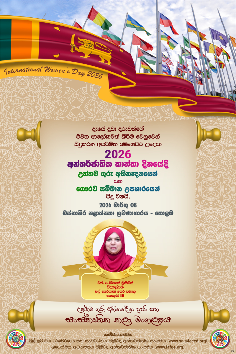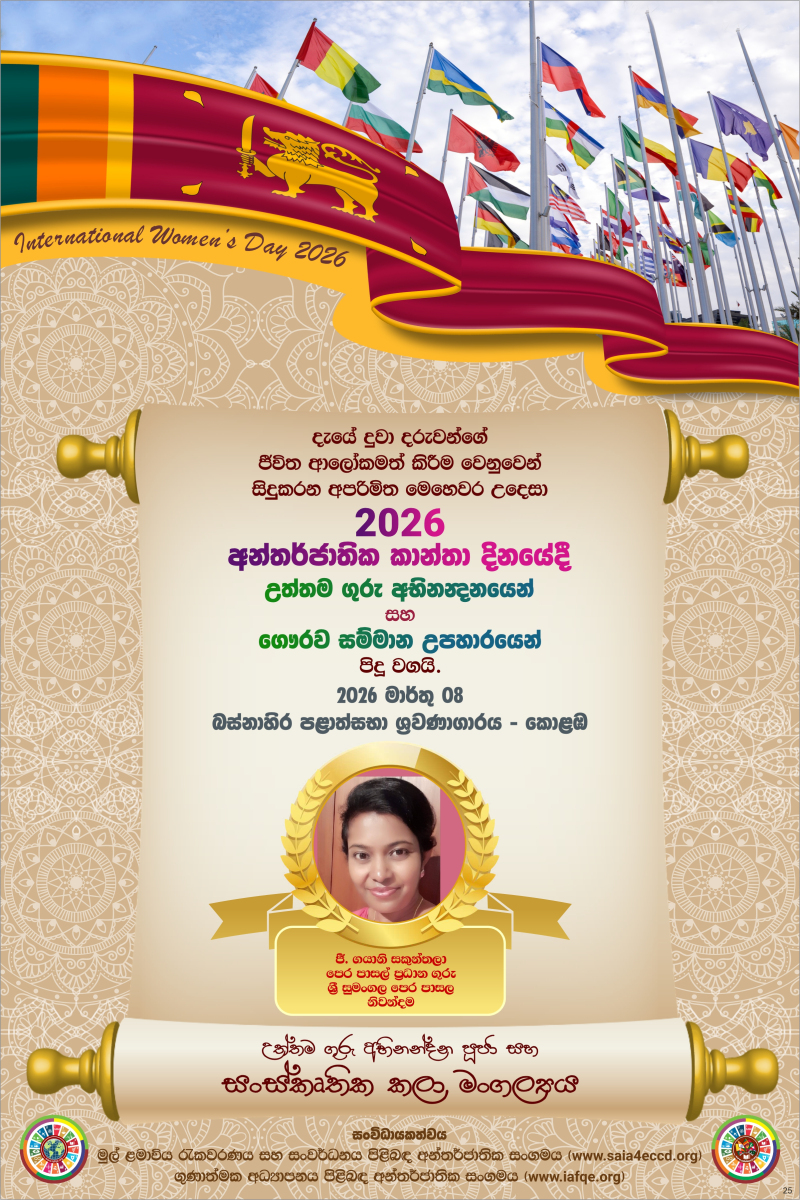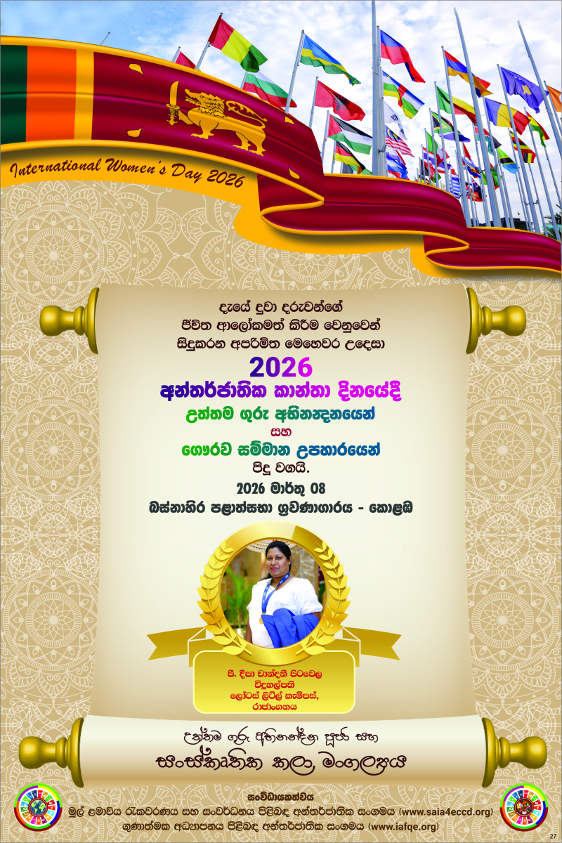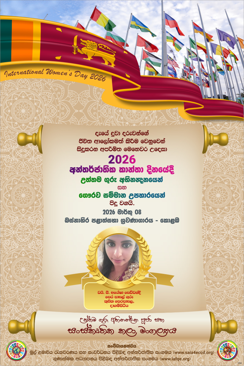 කාන්තා අධ්‍යාපනඥයින්ගේ කැපකිරීම් සහ ජයග්‍රහණ සැමරීම සහ අගය කිරීම