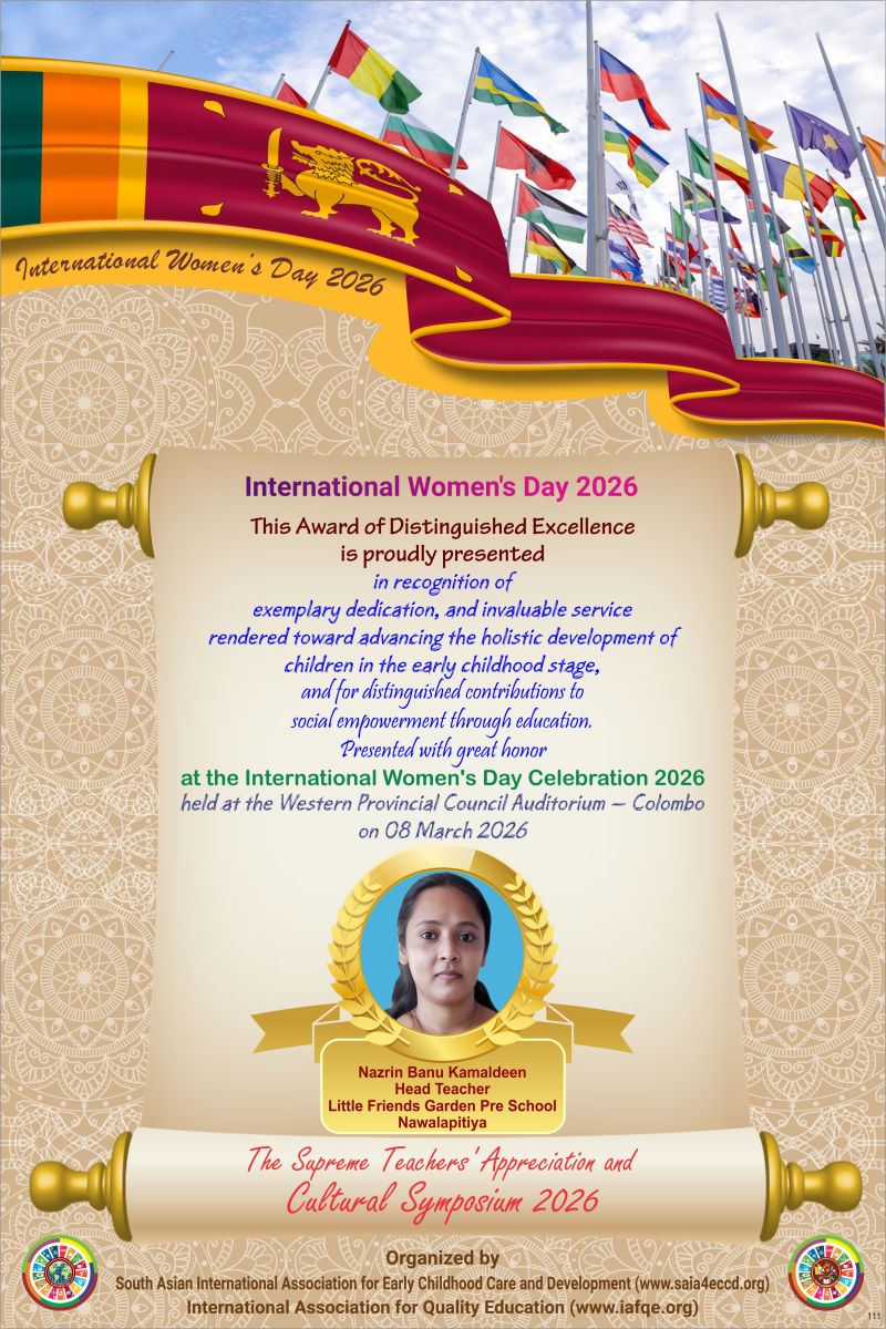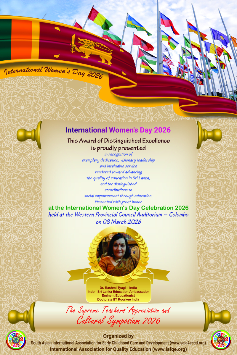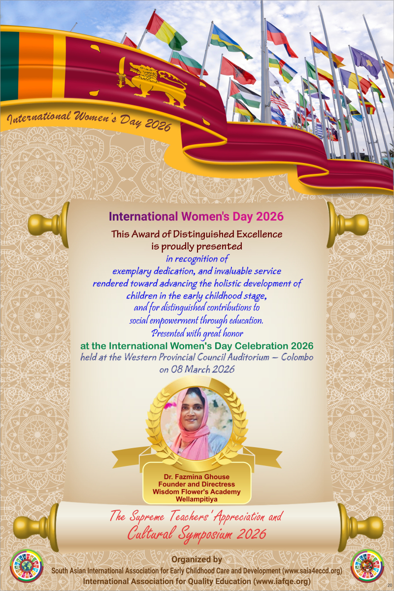 උත්තම ගුරු අභිනන්දන පූජාව 2026 යනු ගුණාත්මක අධ්‍යාපනයේ සහ ජාතිය ගොඩනැගීමේ දියුණුව සඳහා ගුරුවරුන්ගේ අමිල දායකත්වයට ගෞරව කිරීම සහ අගය කිරීම සඳහා කැප වූ කීර්තිමත් ජාත්‍යන්තර කාන්තා දින සැමරුමකි. මෙම අවස්ථාවට අධ්‍යාපනඥයින්ගේ නිර්මාණාත්මක හා කලාත්මක කුසලතා ඉස්මතු කරන සංස්කෘතික සම්මන්ත්‍රණයක් ද ඇතුළත් වේ.
